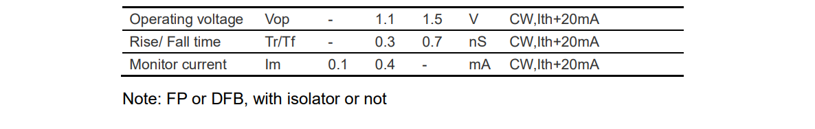 ➢ MQW 1310nm/1550nm FP or DFB LD
